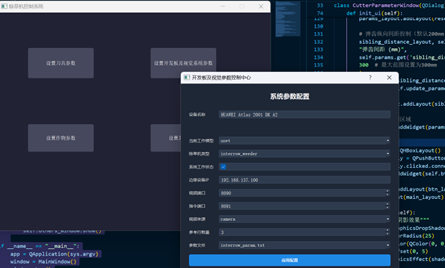 (1)设计并实现智能除草机核心参数交互界面,涵盖摄像头参数、作物相关参数、刀具相关参数、开发吧及视觉系统相关参数等模块的可视化调控功能。